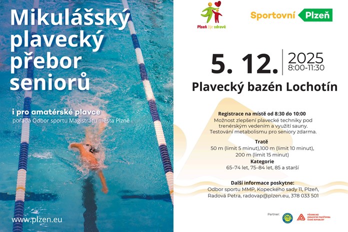 Odbor sportu MMP pořádá již tradiční Mikulášský plavecký přebor seniorů. Letošní ročník proběhne v plaveckém areálu města Plzně na Lochotíně.